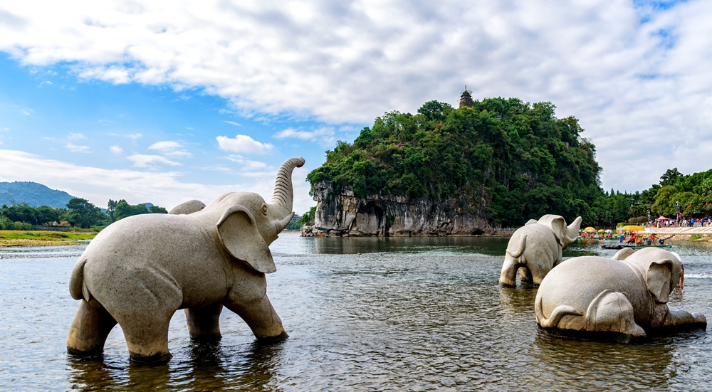 Elephant Trunk Hill, located majestically at the confluence of Li River and Peach Blossom River, is considered as the symbol of Guilin City. With a history of over 360 million years, Elephant Trunk Hill is famous for its vivid elephant shape, which is sucking water from Li River with its long trunk.
