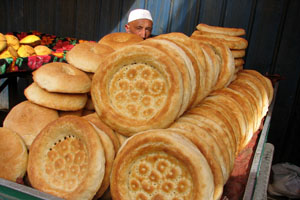 While there are different varieties of Nan in Xinjiang, this bread is made by sticking dough to the inside wall of an extremely hot oven and then, after a few minutes, removing the cooked bread. The shape of the bread is typically round, flat, and golden brown.