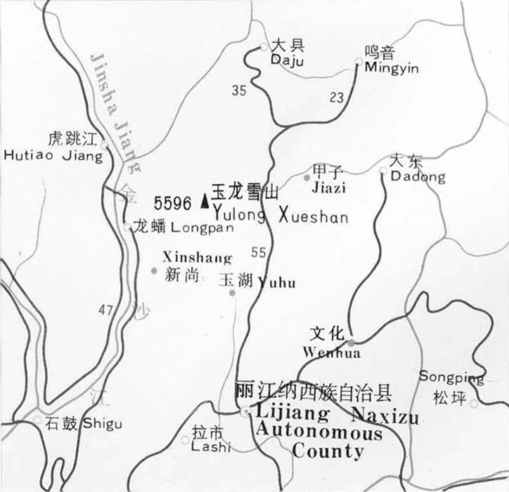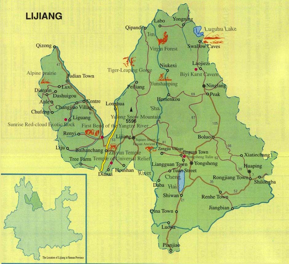 Location Map of Lijiang Yulong Snow Mountain with Bilingual Texts