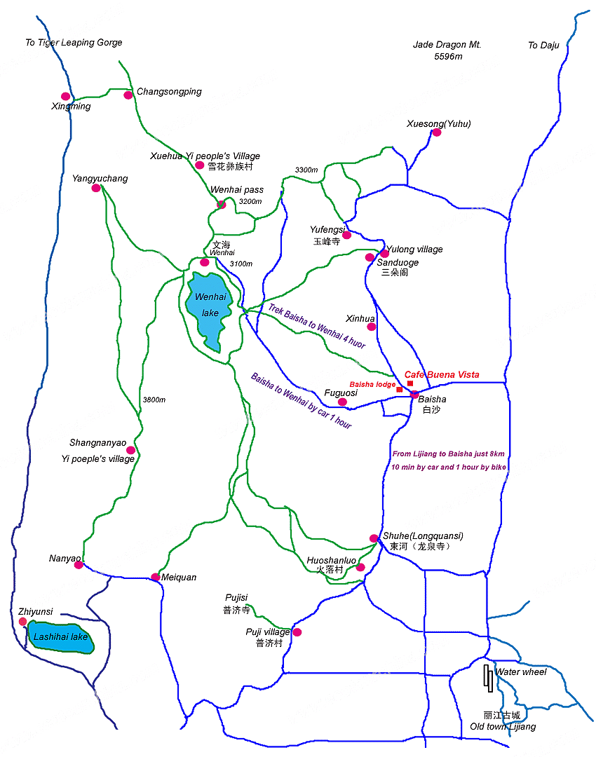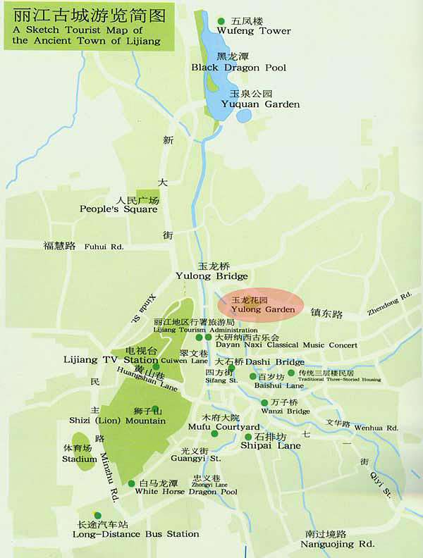 Travel Map of Lijiang Yulong Snow Mountain with Bilingual Texts
